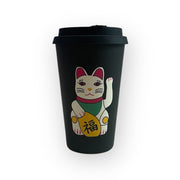 Crafted from sustainable bamboo fibre, it’s lightweight, durable, and designed for life on the go. The sleek black background highlights the playful Lucky Cat design, while the secure silicone lid and heat-resistant grip make it both practical and stylish.