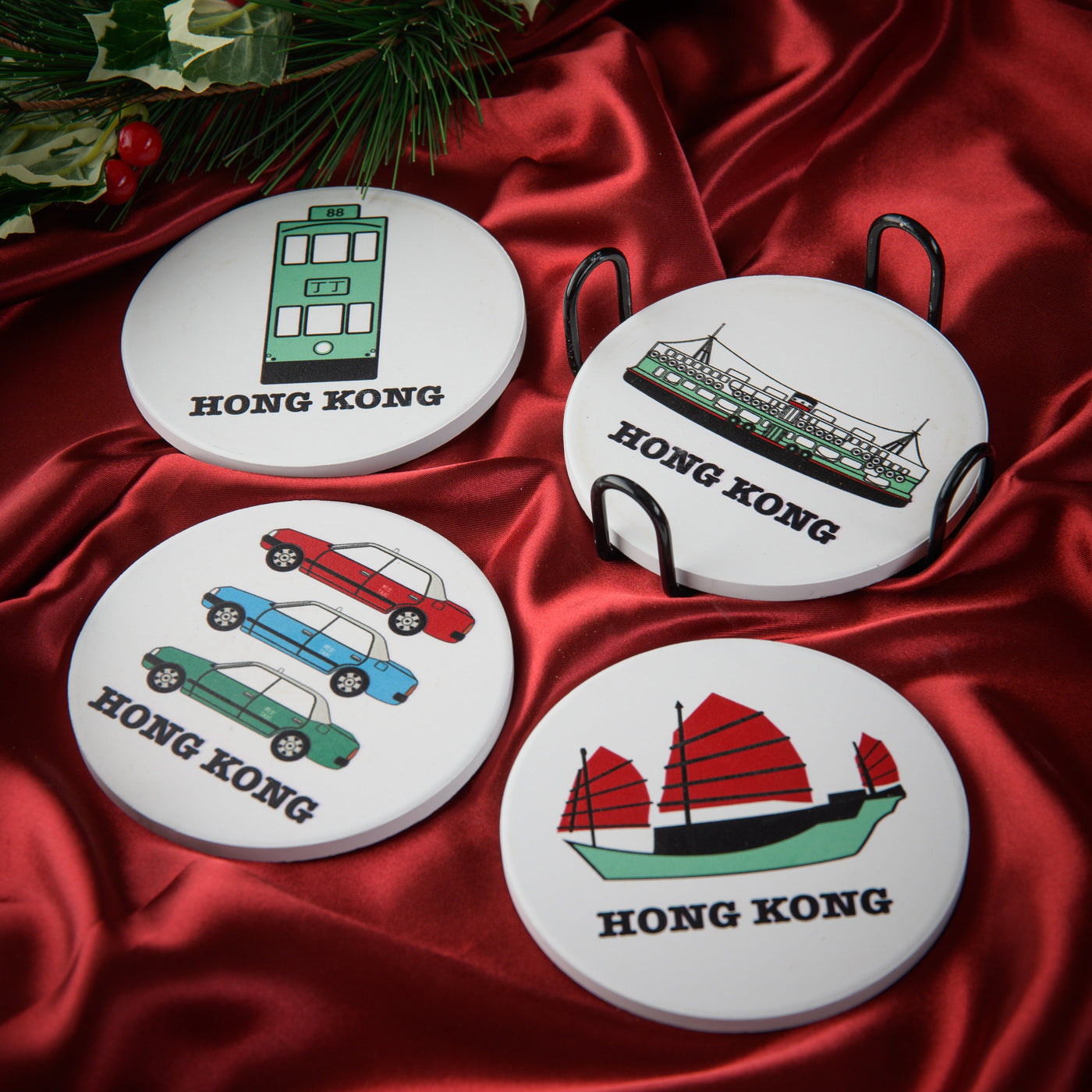 Crafted from absorbent ceramic (each measures 10.4 cm × 10.4 cm), each coaster features a cork backing that effectively protects tabletops from moisture and heat.