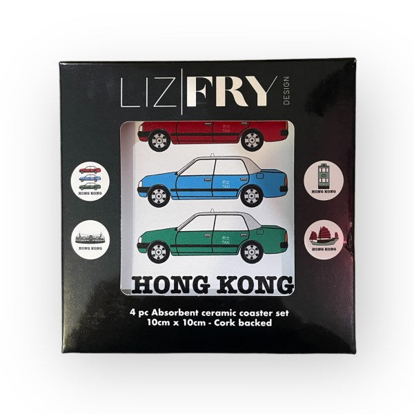 This set contains four white ceramic coasters, each showcasing a subtle yet distinctive design from Liz Fry’s creative range—perfect for those who appreciate understated elegance.