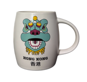 A ceramic mug featuring a stylised lion dance head inspired by the vibrant traditions of Hong Kong.